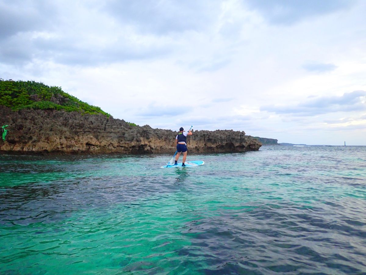 カヌー&SUP:波のこない入り江で最初に練習できたので、カヌーの操作には大分なれました。波の大きな沖にも少しだけ行きましたが、入り江よりもとても海が綺麗で宮古島の大自然を満喫できました。