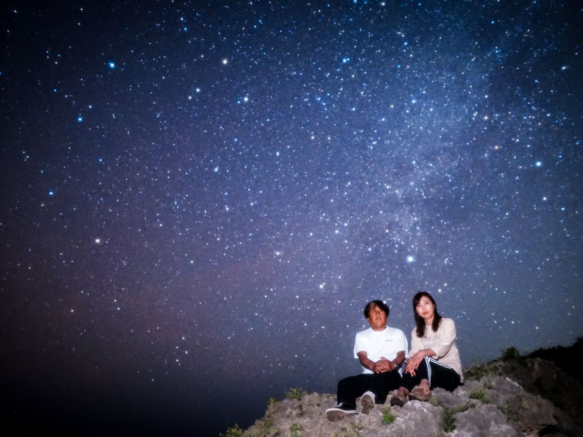 台風が来ている最中での星空写真撮影で、とても心配だったのですが、スタッフの方々が雲がはけるのを根気よく待ってくださりベストタイミングで写真撮影をしてくださりました。音楽をかけてリラックスさせてくださったり、オススメポーズもレクチャーしてくださり、撮影は無事に終了!後日、写真データが送られてきて大感動!肉眼では見えない無数の星達をバックにした素敵な写真でした。自宅のリビングに飾っています。貴重な体験、大変良い思い出になりました。自分ではあのクオリティの写真は撮れないのでオススメです。地元の美味しいお店や可愛いインテリアショップ情報もありがとうございました。