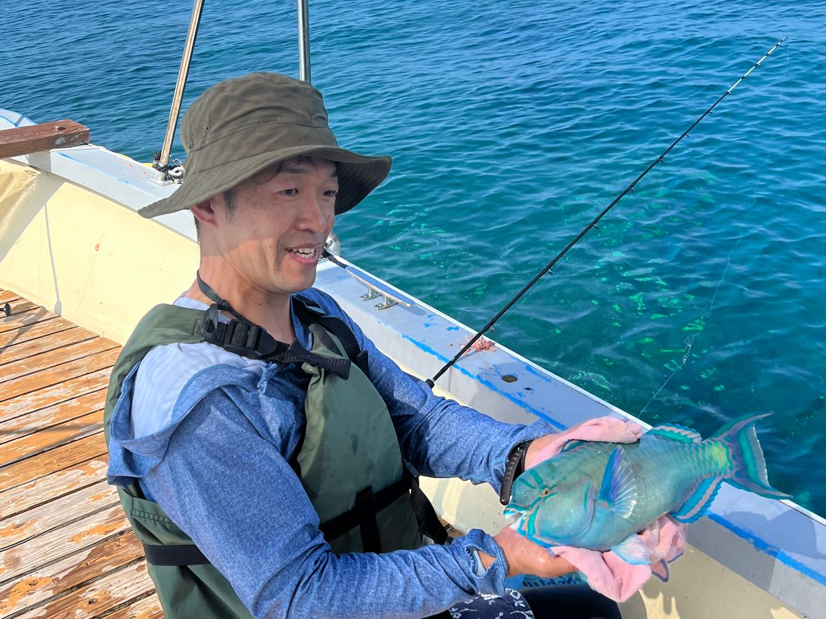 丁寧に魚の釣り方を教えて頂き、青いいかにも沖縄の魚、大きな魚を釣る事ができました。