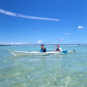 当日は曇空にも拘らず見事な宮古ブルーの海を体験出来ました!ニモや綺麗な多くの魚もクリアカヤックを通して沢山見れたうえに、ドローンでまるでPVのような音楽付き動画も撮影して頂き大満足です!