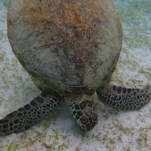 ウミガメはグループで5匹ほど発見できました。ウミガメはゆったり泳いでいて、かなり近くで写真撮影を行うことができるだけでなく、少しだけなら触ることもできました。写真撮影では、インストラクターの方がかなりの枚数を撮って下さいました。ウミガメをみたあとは、珊瑚礁できれいなお魚も見ましたが、珊瑚礁が近くてとても満足できました