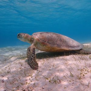 想像していたよりたくさんのウミガメに会うことができました。もくもくと藻を食べる姿が大変可愛かったです。
