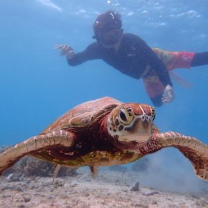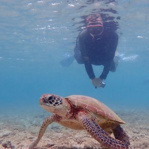 シュノーケリングの装備が綺麗で水が入ってくる事はなく、快適な環境で体験出来き、そして沖から海に入って直ぐにウミガメと遭遇出来ました!