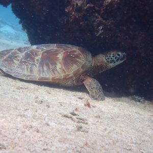 最初はなかなか出会えませんでしたが、一匹のウミガメに出会えました。