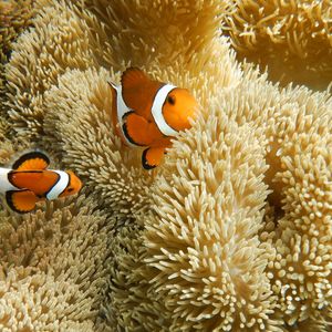 水底の魚が見えるほど透明度が高い海は、熱帯魚の水槽のよう