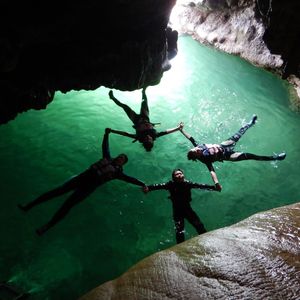 防水ケースに入れたスマホがあれば上から絶景が撮れるし、