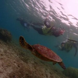 ウミガメとパンプキン鍾乳洞のフォトツアーに参加しました。シュノーケリングをしながらウミガメを近くで見れてその可愛さにずっと興奮していました。