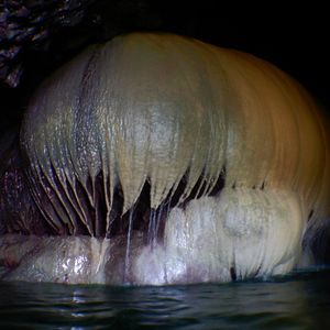 よじ登った部分はザラザラとした硬い質感でしたので滑ることはありませんでした。前日の大雨の影響で、鍾乳洞内は水量豊富でした。