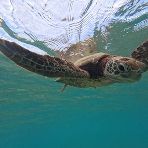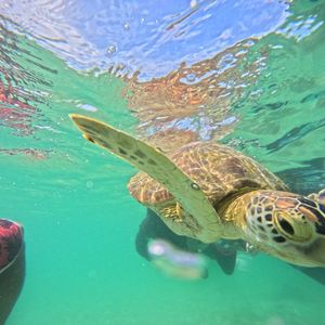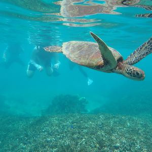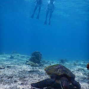 ウミガメに出会えるのはそう簡単ではないとおもっていましたが、シュノーケルが始まってすぐ出会えました!一緒に泳げて感動しました!