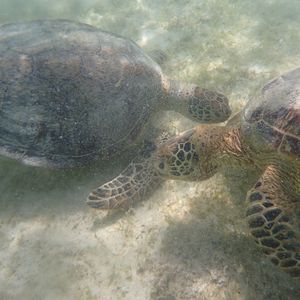 はじめにシュノーケリングの説明を受けて、すぐに海の中へ!7月の平日15時頃であったので人も少なく快適でした。しばらくもぐっているとガイドさんがウミガメを見つけてくださり、そのポイントに誘導してくれました。3匹のウミガメに会うことができ、ガイドのるいさんともえかさんのお話もとてもタメになることも多く楽しかったです!写真もいっぱい撮ってくださって大満足でした!