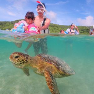 シュノーケリングでは、ウミガメを見ることができました。呼吸の為、水面から顔を出すウミガメもみれ貴重な体験ができました。