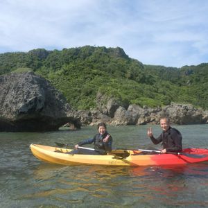 海からしか入れない鍾乳洞にカヌーで行きました。天候が良くても干潮満潮の時間や波の状況で入れない時もあるみたいで、今回は予定していた時間より早くて参加するか迷いましたが結果行ってよかったです。年間で50日くらいしか見れないと言っていた滝も見れました。鍾乳洞に入ってからのガイドのなおさんの行動力はすごかったです。パンプキン登るとき、降りるときは力強くサポートしてもらって感謝しかありません。擦り傷してしまいましたが大した事は無いので大丈夫です。豆知識も色々と教えていただきすごく楽しい時間でした。貴重な体験ありがとうございました。