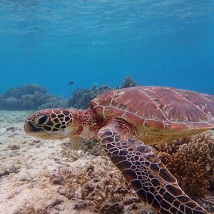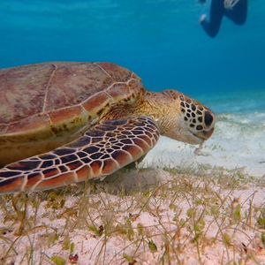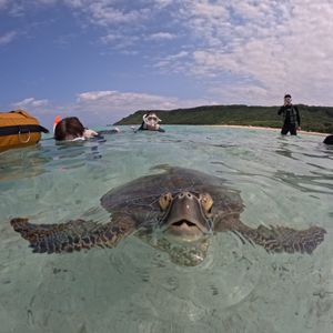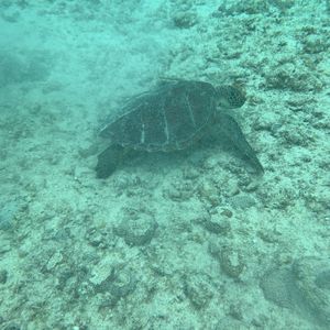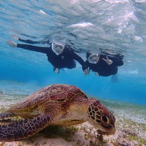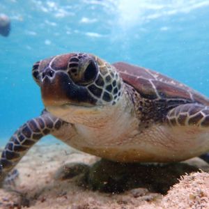 遠浅の海で少し泳いだらウミガメや魚がたくさんいてこんなに近くにいることにびっくりしました。海も透明でとてもきれいでした。写真もたくさんとっていただけで満足でした。