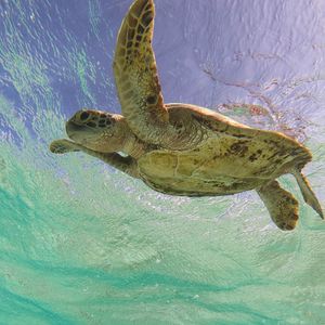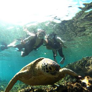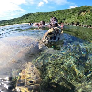 高確率でウミガメを見られるとのことで夫婦でツアーに申し込みました。私はシュノーケリング初体験で泳ぎもそんなに得意ではないのですが、泳ぎ始める前にシュノーケル用のマスク・ゴーグルの装着方法を丁寧に教えていただき、安心して海に入ることができました。カクレクマノミや念願のウミガメにも出会うことができ、素敵な写真も撮っていただけました。本当にありがとうございました!