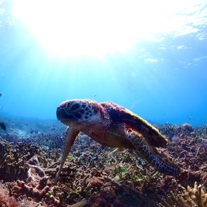 シュノーケリングを先にしましたが、海に入ってすぐに凄く間近でウミガメが見ることができて、見ていて、とても可愛かったです。また海中に日があたると魚がキラキラ輝いて見えて、まるで別世界で綺麗でした。サップは初めての体験でしたが担当者も一つ一つ、丁寧に説明して下さり、写真もたくさん撮って下さったので、問題なく立つことが出来たし、貴重な体験ができて、大変満足しています。宮古島も気に入ったので、また是非利用したいと思っています。