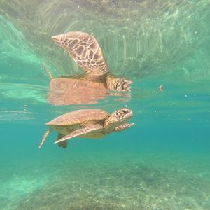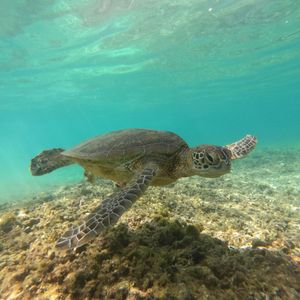 3匹のウミガメと出会うことができました。息継ぎのために水面の方まで上がってくるタイミングで触れるくらいの距離で見れました。ウミガメ以外にも色々なお魚がいて、カクレクマノミがとてもかわいかったです。