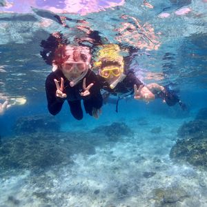 初めてのシュノーケリングでしたが、丁寧に教えて頂いてとても楽しかったです。ライフジャケットを着用しているので足が着かない場所でも心配なく泳げました。泳ぎが苦手な場合でも浮き輪につかまれば引っ張ってくれるので安心です。