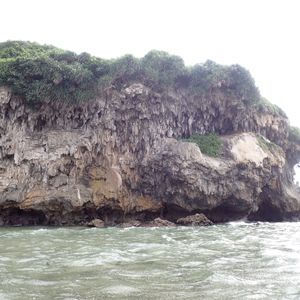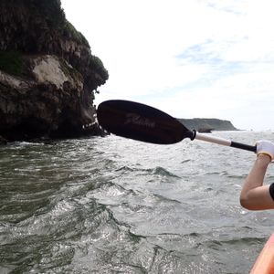 入口まではカヌーで漕いで行き、入口前でカヌーから降りそのまま海の中を少し歩いて鍾乳洞の中へ。
