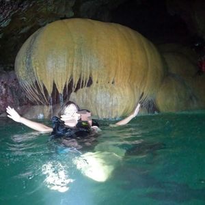 鍾乳洞の中はパンプキンを見るだけかと勘違いしてましたが、暗い中をライトで照らしながらよじ登るというか引っ張り上げてもらったり、冷たい湧水に打たれたり、飛び降りたり、色々と説明してくださって写真もいっぱい撮ってくださって、とっても楽しかったです。綺麗な海をカヌーで進むのも楽しかったです。良い思い出になりました!