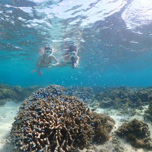 今回の目的だったウミガメと一緒に写真を撮ってもらえてとても満足しています。小さな魚たちも色とりどりで水も透明で水槽の中で泳いでる気分になりました。なかなか自分たちでは撮りにくい綺麗な水中写真を撮ってもらいたい方におすすめのアクティビティです。
