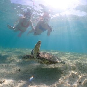泳ぎ始めて10分程度でウミガメに遭遇することができました。少しですが一緒に泳ぐことができ、ウミガメが水中に生えている草を一生懸命食べている姿を間近でみれたのがとてもうれしかったです!その後1時間程度泳ぎましたがはじめてのシュノーケリングとゆうこともありかなり疲れました。ツアーに参加することでウミガメと出会えるスポットを探したりする時間が短縮できたので良かったです。個人で行っていればかなり疲弊していたと思います