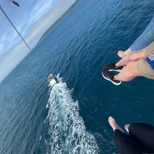 船が止まるタイミングでは揺れが大きく危うく酔いそうになりましたが、基本それなりのスピードで走行してくれるので、たいして気持ち悪くてならずに終わりました。合計4組で順番に飛びましたが、停止して揺れてたのは2回くらい。