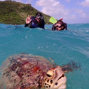 カップルで利用しました。久しぶりのシュノーケリングでしたが、ガイドさんの丁寧な案内とライフジャケット着用もあったので安心安全に楽しめました!心配した天候も問題なく、水中に差し込む光がとても綺麗で癒されました。(もちろんウミガメも可愛かったです)思っていたより写真もたくさん撮ってもらったので、早起きした甲斐あってとても良い思い出になりました。また宮古島へ来た際は利用したいと思います。ありがとうございました。