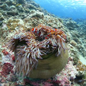 途中 ニモのモデルとなった カクレクマノミが住んでいるポイントへ。 こんな近くで見れて感動です!サンゴ礁も本当綺麗。