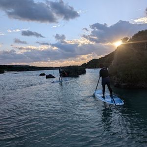 サンセットを海の上から見たくてこのツアーを選びました。2人共初めてのSUPでしたがガイドのナオさんのおかげで上手に乗ることができました。SUPで進んで行くのも楽しく調子に乗り過ぎて落ちてしまったのもいい思い出です。このツアーでは湾の中で波の穏やかな所で体験出来るのでとても良かったです。ナオさんとの会話も楽しく地元がたまたま同じでその話でも盛り上がりとても楽しかったです。また宮古島に来る時はぜひpipiさんのツアーに参加したいと思います。