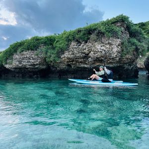 初めてでも楽しく乗れました。夕日も見ることができ、とてもいい思い出になりました。会場は島の中心部から車で15-20分ほどで、アクセスも良かったと思います。2,3組でひとつのグループになり、係の方が1人ついて順番に写真を撮ってくださいます。今回体験をした場所は小さな湖のようになっている場所で、魚などを見るのは難しいですが、波が穏やかで初心者や泳ぎに不安がある方でも挑戦しやすい場所だったのではないかとおもいます!