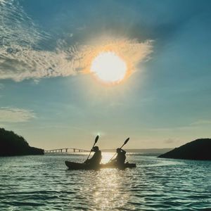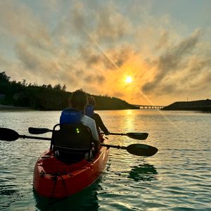 シーカヤックはボートに乗り、パドルを使って海上をゆっくり進みながら周りの景色を楽しむ、沖縄の人気アクティビティです。カヌーとカヤックの違いは使用パドルによって異なります。カヌーは「シングルブレードパドル」と呼ばれるブレード(水掻き)が片方だけについているパドルを利用します。逆にカヤックは「ダブルブレードパドル」と呼ばれるブレードが両方についているものを利用します。どちらも安定したボートを利用し、事前に陸で講習を行いますので初心者やお子様でも安心して参加していただけます。 沖縄の海はとても透明度が高く水面下には美しい世界が透けて見ることができます。海中観察には足元が透明になっているクリアカヤックがおすすめです。またマングローブの森を進むプランや、世界遺産に登録された「やんばるの森」を散策するプラン、青の洞窟を探索するプラン、そして夕日の中を進むサンセットプランやライトアップを楽しむナイトカヤックなど豊富なラインナップをご用意しております。ご家族で、ご友人と、お好きなプランをお選びください。ご予約はこちら!