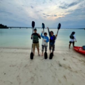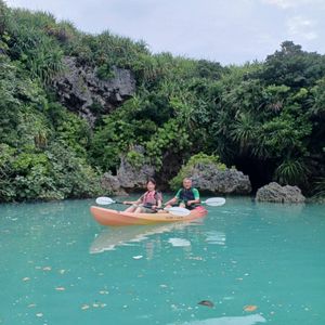 3人で一緒にカヤックを漕ぐことができて良かったです。思っていたよりユニの浜までが遠くて大変でしたが、途中で漕いでいる写真も撮ってもらえたし、ゆっくりペースで行けました。