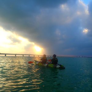 梅雨入りしてしまったため、天気に恵まれない日程でとても不安でした。事前に海が荒れているため、周りを湾に囲まれている場所に変更になると連絡をいただきました。空も曇っており、仕方ないと思いサンセットは半ば諦めて向かいましたが、たまたま運良く広い場所へ移動することができました。珊瑚の真上を通り魚がたくさん見れただけでなく、開けた場所に出れたおかげできれいな夕焼けを見ることができました。SUPは今回が初めてだったのですが、インストラクターの方がゆっくりと丁寧に教えてくださり、楽しく漕ぐことができました!また、写真もたくさん撮っていただけてとても嬉しかったです。とても静かな場所で綺麗な景色を見ながらのSUPは格別で、日々の疲れが癒やされ、本当に素晴らしい体験でした!また宮古島へ来れる機会があれば、必ずまたサンセットSUPをしたいと思います!本当にありがとうございました。