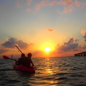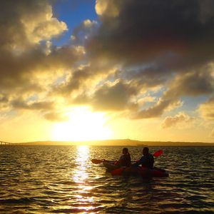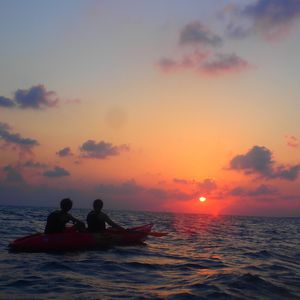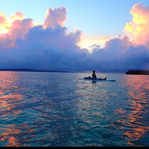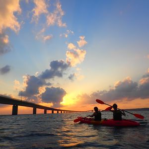 9月24日2人でカヤックに参加しました!ツアーのガイドさんは気さくでかつ紳士的な方で、安心して参加できました。何枚も写真を撮って送って下さり、嬉しかったです◎宮古島サンセットビーチからカヌーで出発し、伊良部大橋の下あたりまできて夕日を見ました!絶景でした!また、2人で息を合わせてカヌーを漕いで絶景を眺めることが出来て宮古旅のいい思い出になりました!夕日は雲があると綺麗に見るのが難しいですが、天気にも恵まれとていい体験をさせてもらい、満足です!これから行く方にアドバイスですが、波でカヌーが揺れるので、船酔いしやすい方は酔い止めを飲んでくるといいかもしれないです。あと、カヌーはよっぽど海に落ちることはないそうなので、首からぶら掛ける携帯の防水ケースにスマホを入れて持っていくといいと思います!カヌーの上から自分で夕日を撮ったりできました(*^^*)