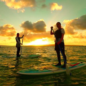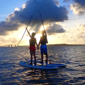 今回初めて宮古島に行き、夕日をみたいとのことでこのツアーに参加しました!最初はSUPに立てるか不安でしたが漕ぎ方も教えていただき、難なくできました。
