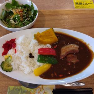 昼食はバス車内で事前に注文を取ってくれたので、レストランでは待ち時間なく提供されて、薬膳カレーを食べましたが美味しかったです。