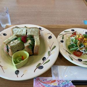 昼食は、乗車時にメニューから選ぶのですが(有料)、写真と現物が微妙に違っていた。頼んだサンドは、ボリュームが、ありすぎでした。