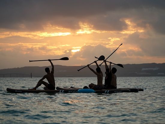 サンセットSUPで非日常体験 宮古島の夕日を満喫しながらSUPを楽しむ♪特別な瞬間をカメラマンが撮影<無料撮影&データ付き/宮古島>