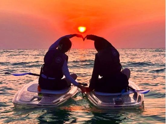 宮古島サンセットクルーズ 選べるクリアSUP or クリアカヤック+ドローン撮影データ付き 絶景ロケーションを独り占め!0歳から参加OK◎<約2時間/宮古島>