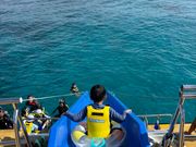 9歳5歳の子供と一緒に参加しました。とても深そうだし、参加前は5歳の子は大丈夫かな〜と少し不安でしたが、ポイントに到着すると自ら飛び込んでいました!シュノーケルだけだとどうしても子供達は飽きてしまうけど、ブランコ滑り台飛び込み台と充実した船で半日ツアーでしたが、まだまだ遊びたい様子でした^_^スタッフの方々もしっかり監視されていて、盛り上げる声かけも良かったです!!