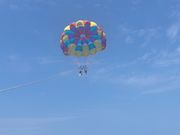 移動中の船も猛スピードで浮遊感があって、それも新しい体験だったからすごい楽しかったし、音楽もかかっててテンション上がった!パラセーリングも緊張したけど怖くなくて安全に上がり上からの景色が良かったし、良い思い出になった。