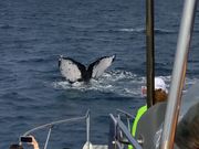 1時間位クルーズして、船酔いになりそうになった頃、クジラのブロー発見!最初はブローだけでしたが、クジラの姿が見え始めジャンプも見せてくれました。一瞬にして船酔いが吹っ飛び、クジラのジャンプに目が釘付けになりました。もっと見ていたかったですが、タイムアウトで港に戻る時間が…後ろ髪引かれながら眺めていると、クジラのジャンプの回数が増え、高さもアップしました。ん〜悔しい残念な気持ちが又来たいという思いに