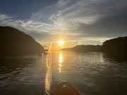 水平線に沈む夕陽をしっかり楽しめました! 海岸で見たりするよりも迫力があり、良い思い出になりました。 陽が出ている時は暑いですが沈むと涼しく快適でした。ボートへの乗り降りや漕ぐ際の跳ね返りで結構濡れるので濡れても良い服装が良いと思います。これまで沖縄ではシュノーケル等海でのアクティビティを楽しんでましたが、こちらも強くおすすめします!