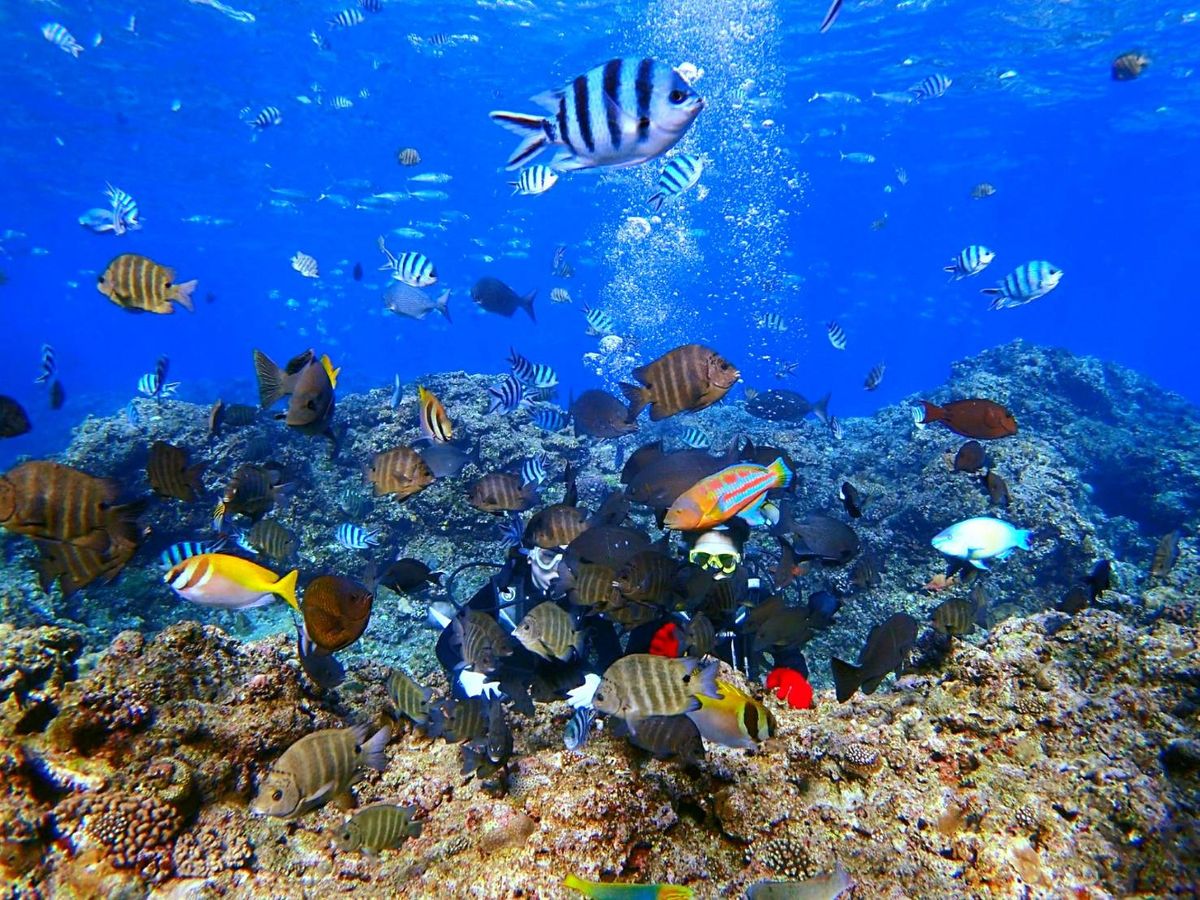 人気スポット「青の洞窟」での体験ダイビングツアー。青く光る幻想的な海の冒険とたくさんの熱帯魚への餌付けを楽しめます。ビーチからでもボートからでもエントリー方法はお好みで選択可能です。全コース、ツアー中の写真撮影&データ無料プレゼント付き!