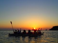 海の上から夕日を楽しむ贅沢なシーカヤック体験