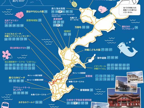 - 路線バス周遊パスは、利用日に限り、沖縄県内の琉球バス社、那覇バス社、沖縄バス社、東陽バス社の運行する沖縄本島内路線バスに何度でもご乗車いただけます。(ただし、高速道路を通過する「111番」「117番」の路線及び、空港リムジンバス・定期観光バスはご利用できません)
