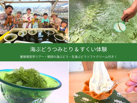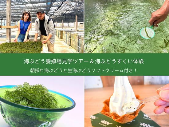 海ぶどう養殖場見学ツアー+海ぶどうすくい 沖縄の名産品を知る&味わう!朝採れ海ぶどう&生海ぶどうソフトクリーム試食付き 海ぶどう摘み取り体験付プランも<糸満市>