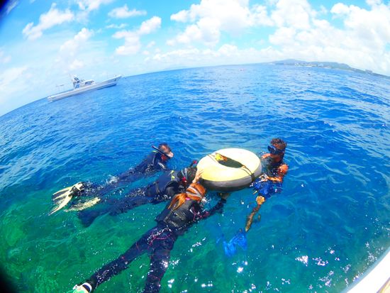 水中ではお客様の手の届く範囲で引率し、安全管理を徹底!