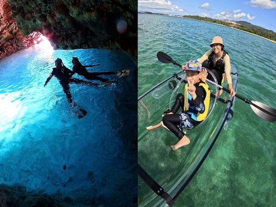 青の洞窟シュノーケリング クリアSUP・クリカヤック付きプランあり★迷ったらココにお任せ!★GoPro撮影付<少人数制/恩納村発>