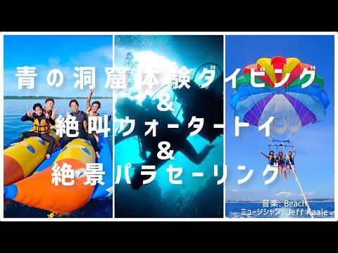 《沖縄3大アクティビティ全部体験!》贅沢セット!青の洞窟体験ダイビング&絶景パラセーリング&絶叫ウォータートイ <ボート/ショップ設備利用可/恩納村発>